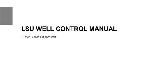 RTS - Free PDF LSU WELL CONTROL MANUAL Library Binding Gutenberg